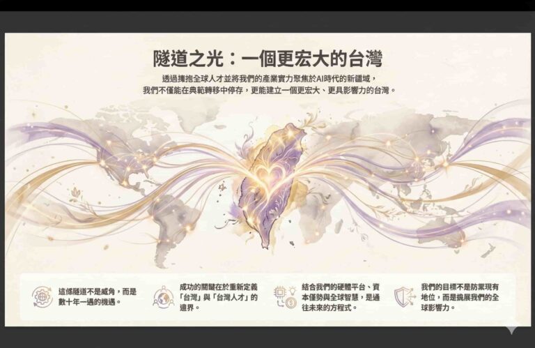 AI 十字路口的臺灣:從硬體強權邁向全球創新樞紐 臺灣正站在 AI 的十字路口,從單一的硬體強國,走向一個連結前沿模型、工廠、醫院、供應鏈與新創團隊的全球創新樞紐。與其在贏者通吃的模型競賽中硬碰硬,臺灣更有機會善用自身的晶片與裝置生態系、深厚產業 know-how,以及遍布全球的人才網路,在精選的垂直利基領域建立主導地位。當我們把 AI 當成傳統製造業、敏捷新創、中小企業與新型態教育體系之間的共同語言,這座島嶼就能從世界的後台代工基地,升級為硬體、軟體與人類判斷緊密整合的關鍵戰略樞紐。 Read More »